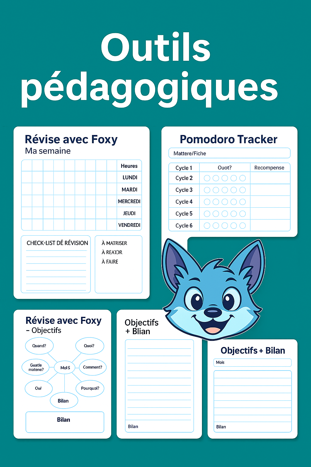Optimise ta manière d’apprendre avec le pack d’outils pédagogiques Révise avec Foxy.Conçus pour accompagner les élèves, étudiants et autodidactes, ces supports imprimables offrent une organisation claire, motivante et structurée pour progresser chaque semaine. Ce pack comprend : un planning hebdomadaire de révision, un Pomodoro Tracker complet avec système de récompenses, une checklist de révision, des…